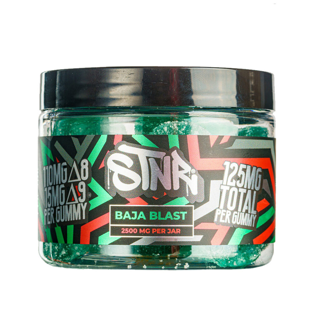 STNR gummies are infused with a potent combination of Delta 8 and Delta 9, meticulously dosed at 2500mg per jar, with each jar housing 20 delectable pieces. This exquisite blend is designed to provide a symphony of sensations that cater to your well-being and pleasure. The gummies boast a rich profile of hemp-derived compounds that aim to deliver a smooth and balanced effect, perfect for those seeking a mild yet profound euphoric experience.